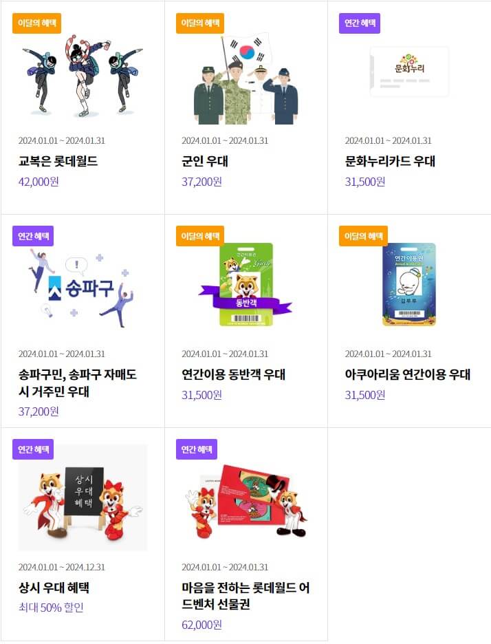 롯데월드 할인 1월 할인혜택 카드 통신사 자유이용권 종일권 오후권 가격