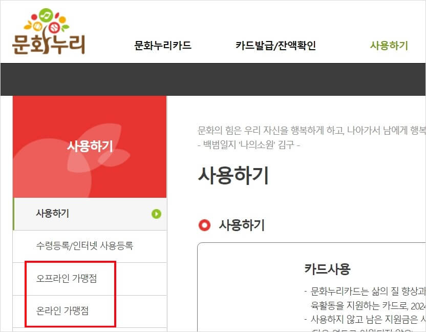 또한, 온라인 오프라인 사용처를 확인하기 위해서는 문화누리 홈페이지를 이용하시면 가능합니다.
