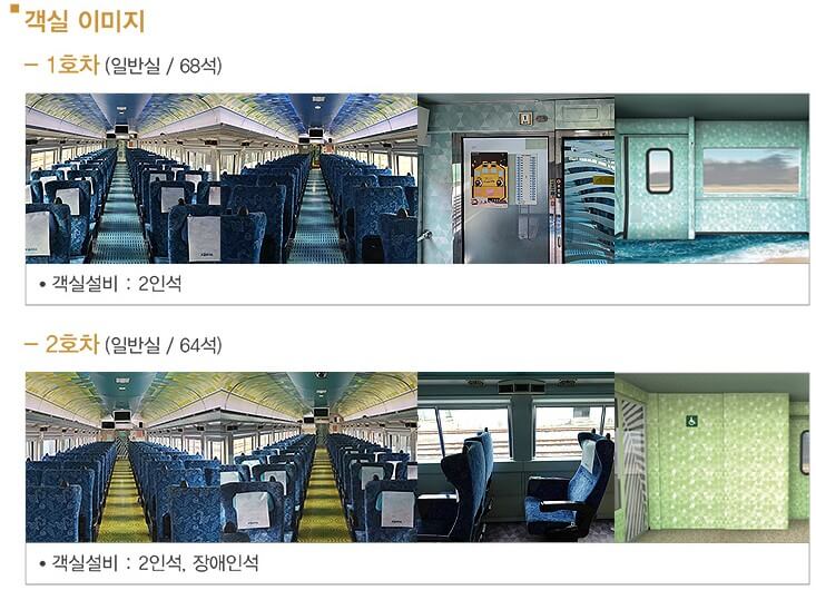 - 2호차 : 일반실 64석 2인석 + 장애인석