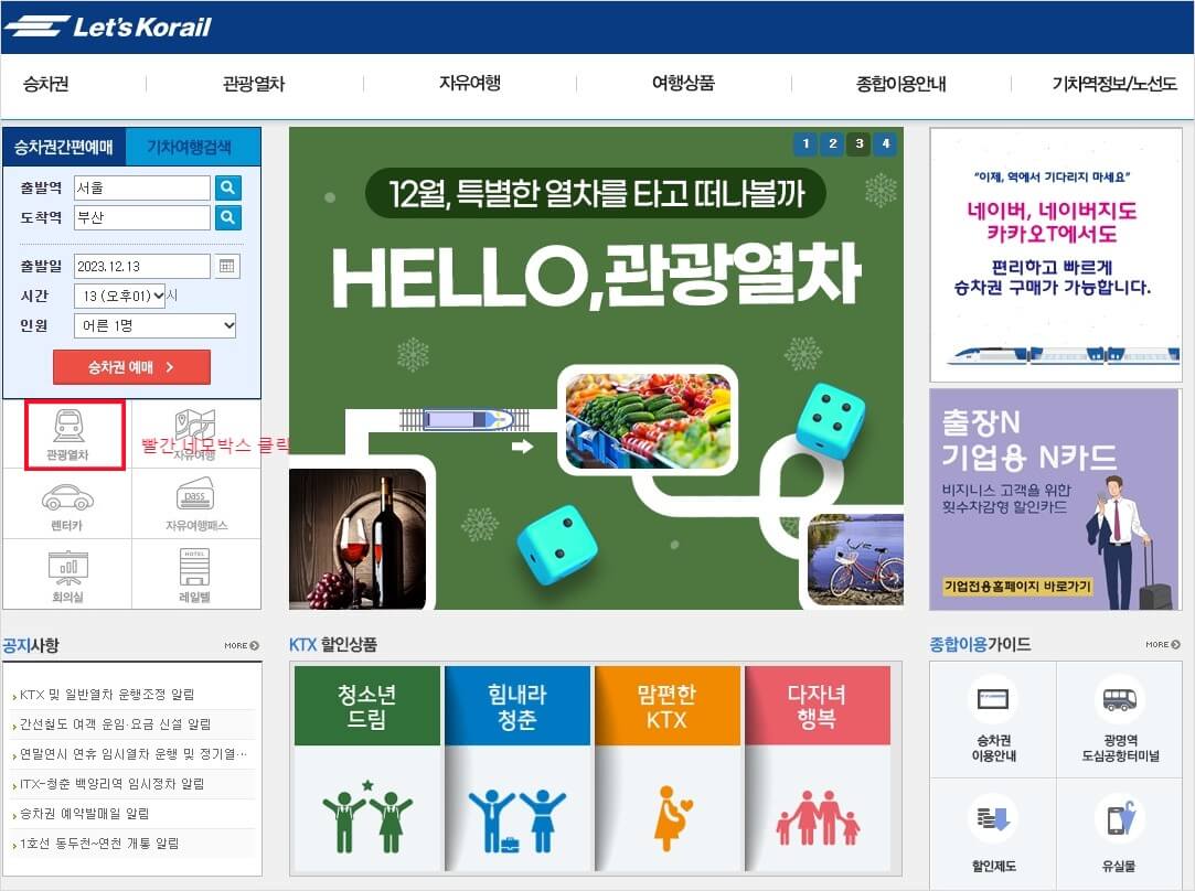 - 예매일 한 달 전 7시 오픈전에 미리 회원가입 후 PC 코레일 홈페이지 또는 핸드폰 코레일톡으로 예매하시면 됩니다.