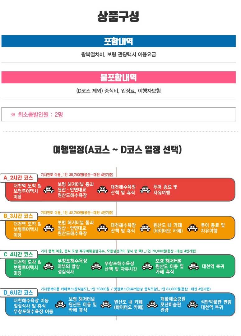- 보령나들이 당일 코스 (가격 : 71,700원)