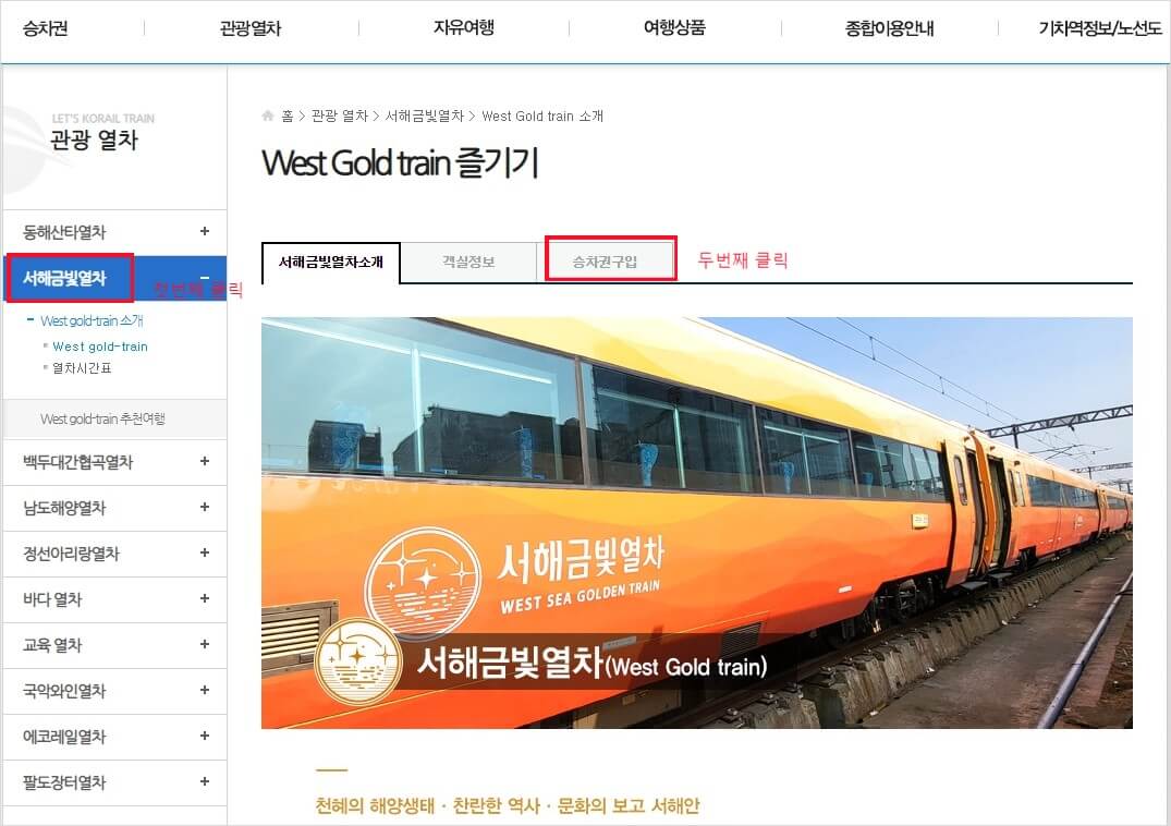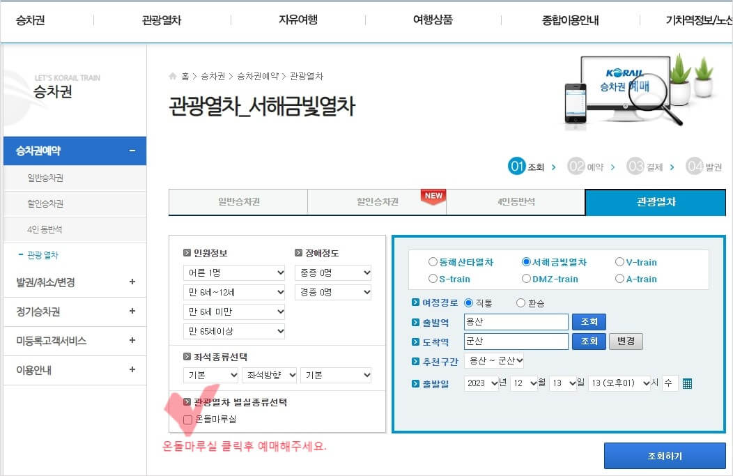 서해금빛열차 온돌마루실 예약방법 핵심정리