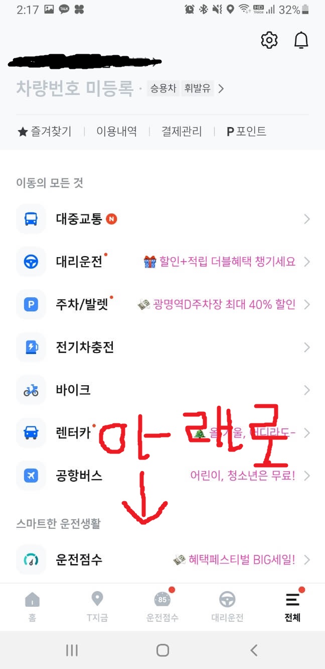 2. 아래로 화면을 내리면 스마트한 운전생활 부분에서 다른 시간 출발 메뉴를 선택합니다.