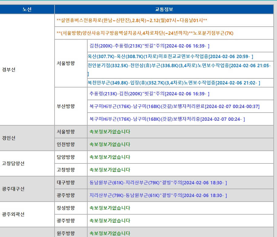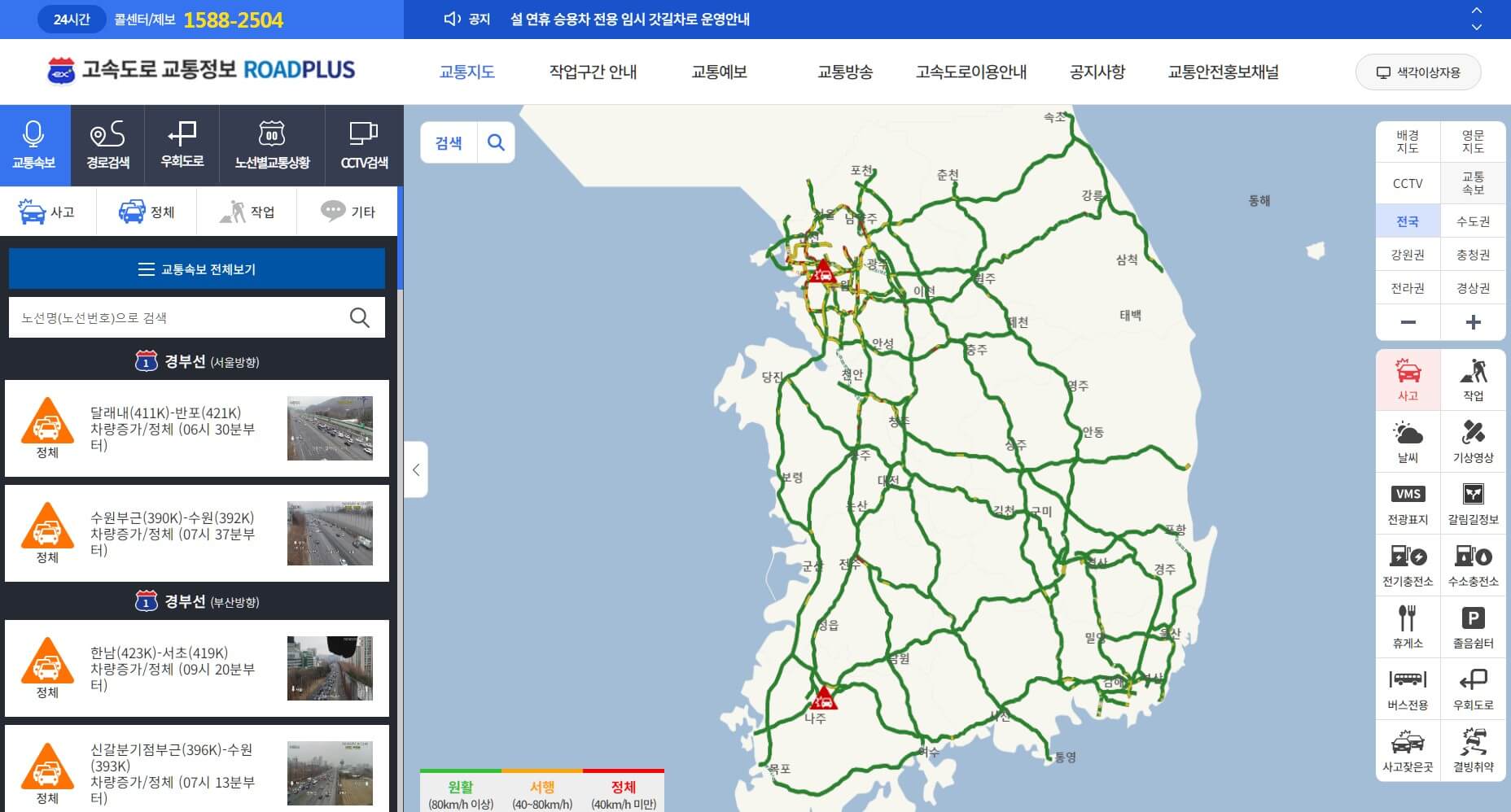 전국 고속도로 CCTV 실시간, 및 노선별 교통상황