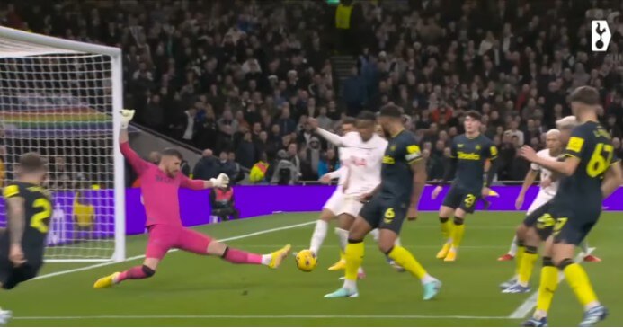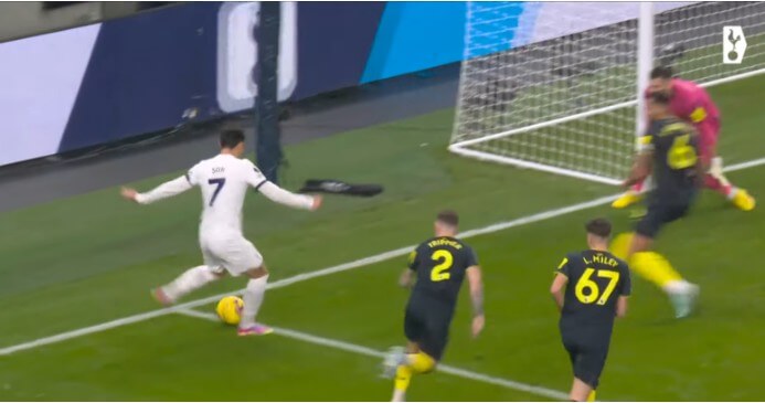 토트넘이 1-0 살얼음 속 리드를 지켜가며 서로의 골문을 위협하던 전반 37분 부상복귀 후 오랜만에 주전으로 출전한 히샬리송에게서 시작된 역습은 손흥민에게 이어졌으며, 상대수비를 무력화시키는 돌파 후 히샬리송에게 정확히 배달하며 리그 4어시 EPL 통산 어시스트 순위 공동 29위 손흥민의 등극을 알리는 축포를 터트렸다.