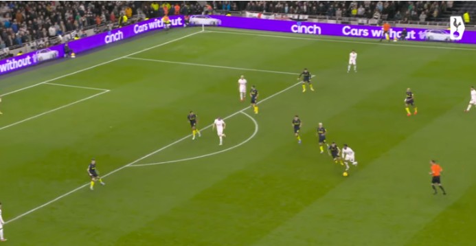 부상우려를 자아냈던 손흥민이지만, 팀의 위기 속에 모른척할 그가 아니었다. 매디슨 포함 수많은 윙어와 미드필더들이 부상으로 출전할 수 없는 위기상황. 골을 마무리하는 역할이 아닌 손흥민 특유의 돌파력을 극대화하여 크랙으로써 공격의 활로를 열고자 했던 포스테코글루 감독의 선택은 탁월했다.