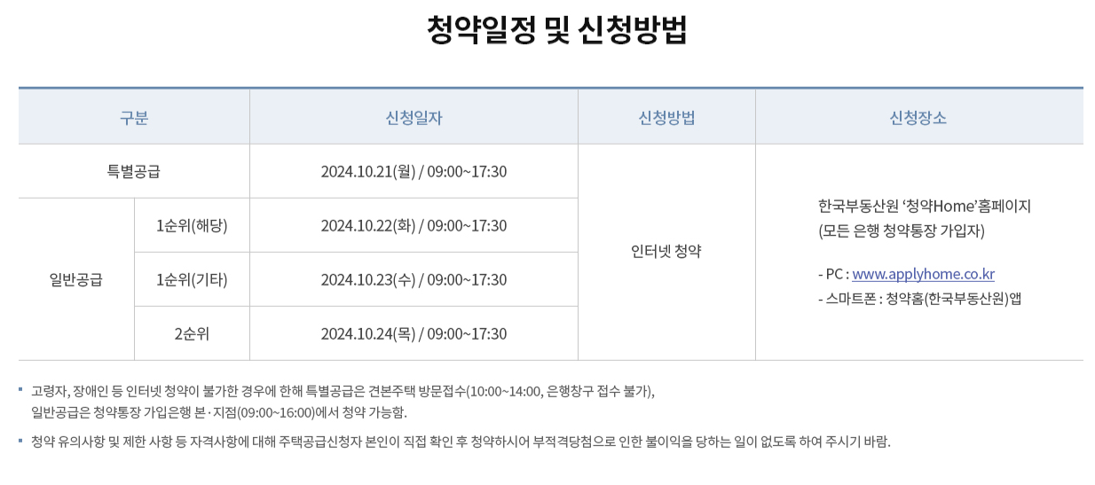 특별공급 대상자들을 위한 접수가 이 날 진행됩니다. - 일반공급 1순위: 2024년 10월 22일(화)