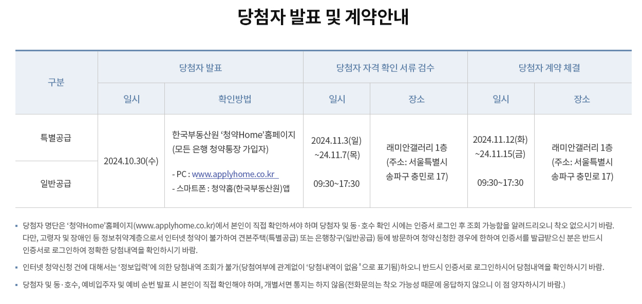 청약 당첨자는 이 날 발표됩니다. - 서류 접수: 2024년 11월 3일(일) ~ 11월 7일(목)