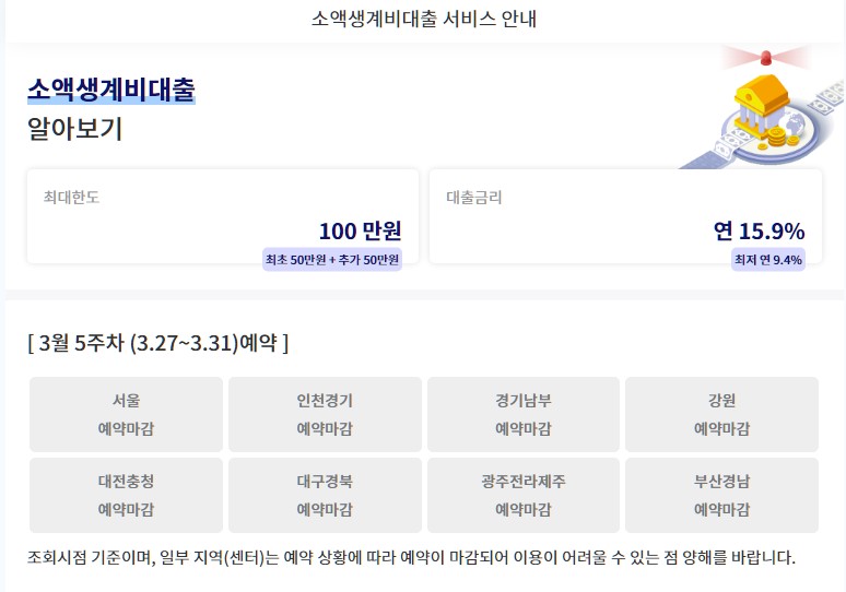 ▶금일 '소액 생계비대출' 사전 예약 개시 시작하자 접수가 폭주하여 접속지연 이에 따른 신청방식의 변화