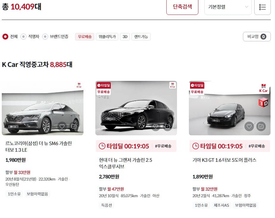 K-car는 판매자로부터 직접 차량을 구매하여 수리하고 정비 후 소비자에게 직접 판매하는 시스템을 갖추고 있습니다. 그렇기 때문에 보통 허위매물이 없는 것이 특징입니다. 회사 명의로 직영점으로 운영되기 때문에 허위매물이 거의 없다고 합니다.