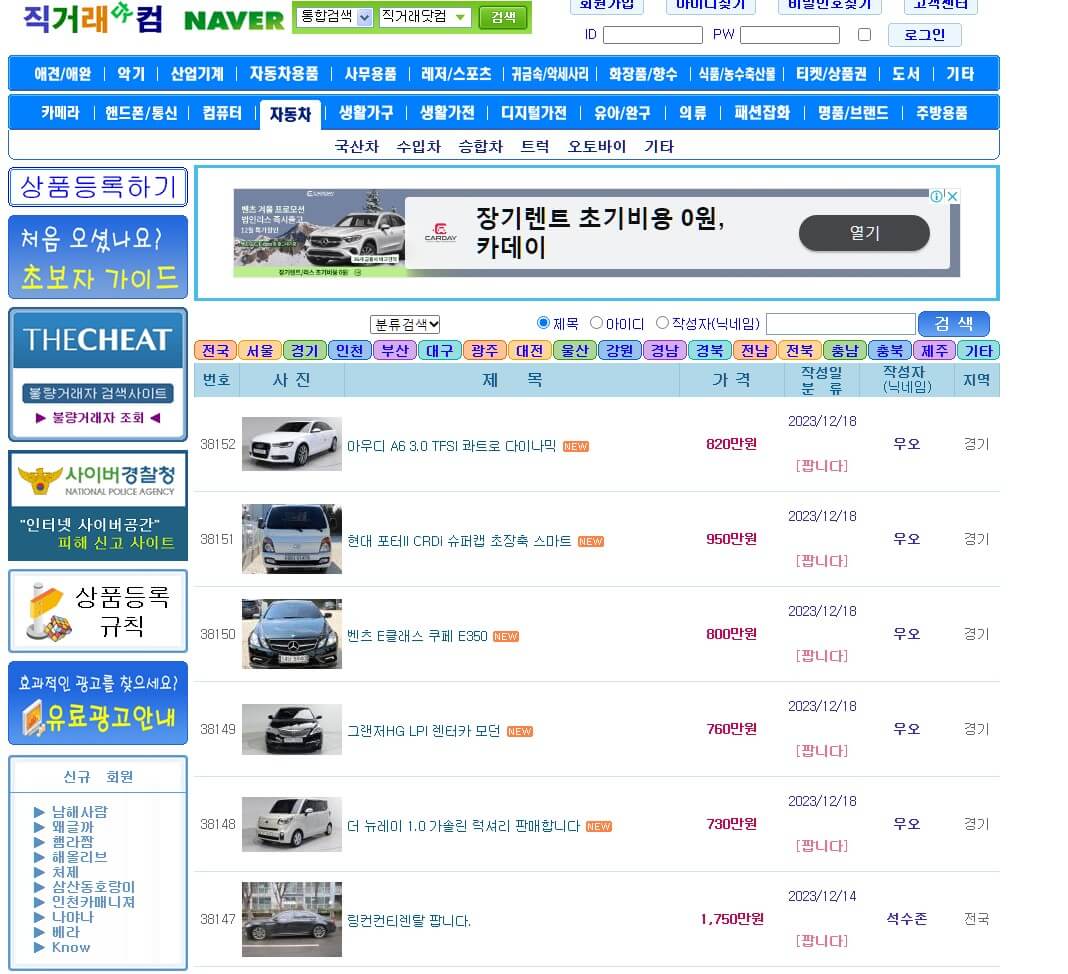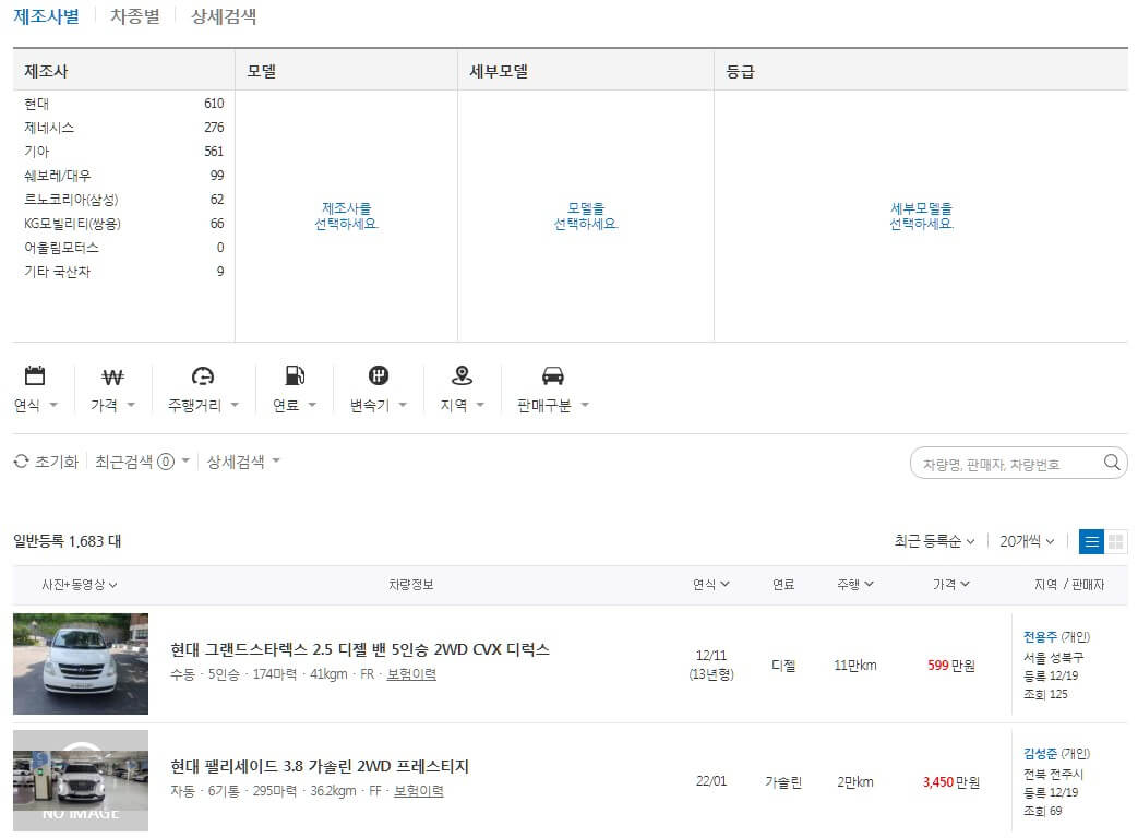 중고차 직거래 사이트로 가격, 연식, 매수, 매도 등 전국 중고차 매물을 직관적으로 확인할 수 있습니다.