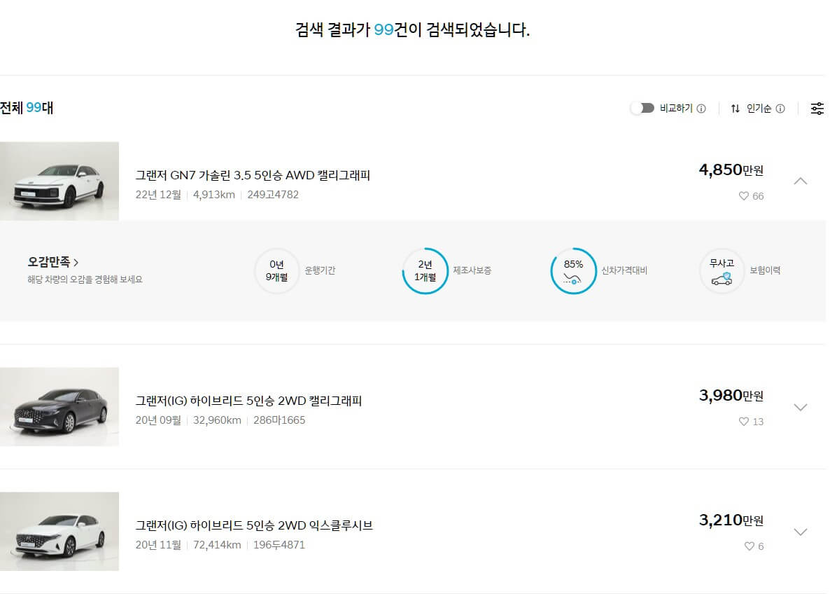 게시물을 통해 주행거리, 사고현황, 차량상태, 차량 내부 사진 등을 자세히 확인할 수 있습니다.