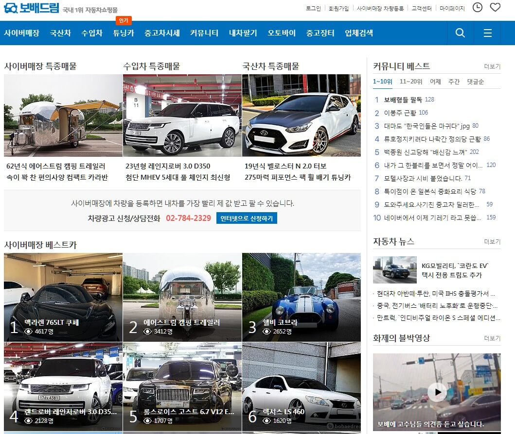 보배드림의 경우 SK엔카와 KB카의 중고차 등록 대수는 적지만 다양한 중고차 매물을 확인할 수 있고, 활성화된 커뮤니티를 통해 자동차 정보를 얻을 수 있습니다.