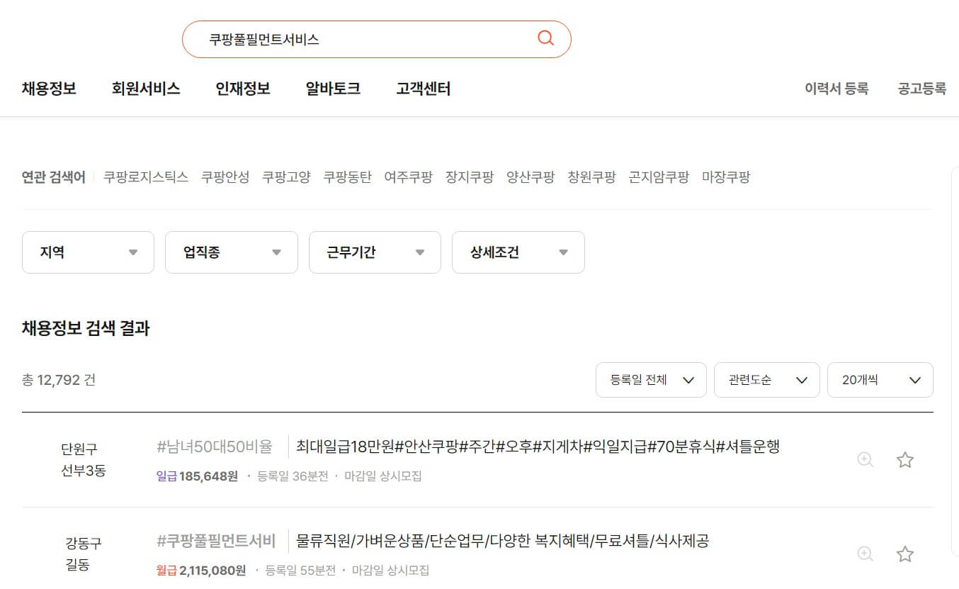 알바몬을 통해 쿠팡알바를 신청하는 방법
