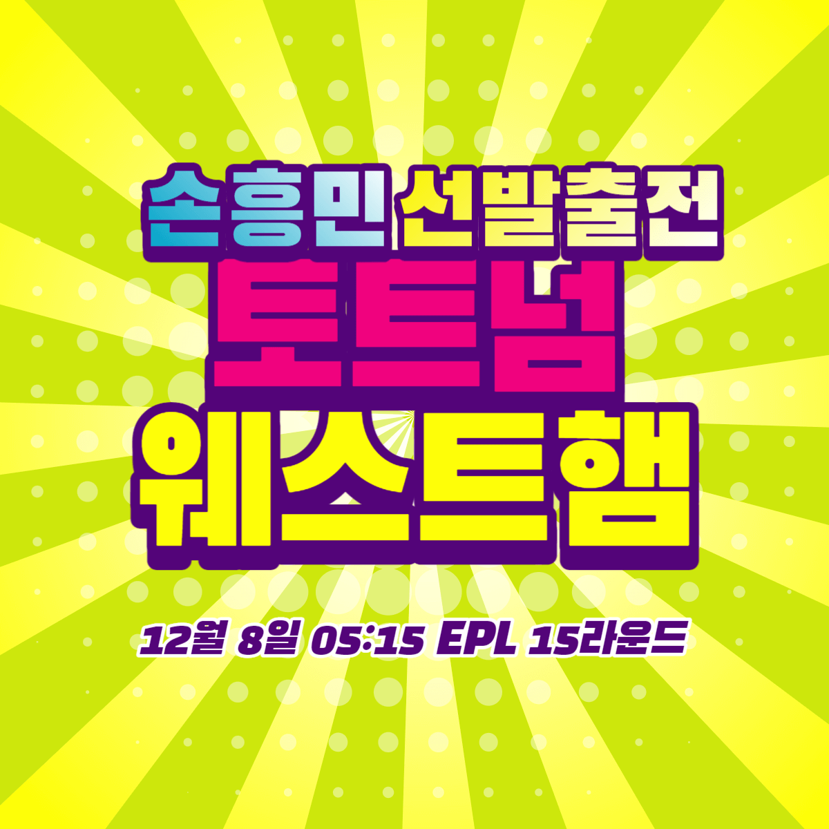 | 12월 8일 (금) 05:15 | 토트넘 | 웨스트햄 |