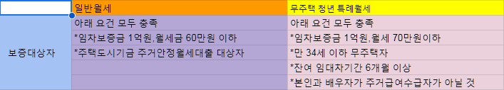 - 보증금 1억 원 이하, 월세 70만 원 이하인 월세 계약자