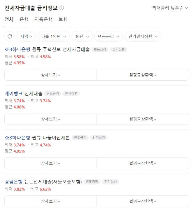 | 6 | 대구은행 | 내손안에 적금 | 3.50% | 2.96% | 4.05% |