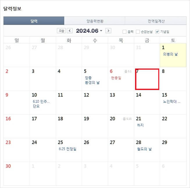 | 7 | 6월 6일 (목) | 현충일 |
