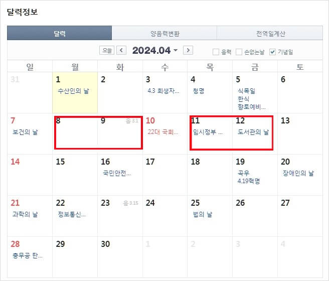 | 4 | 4월 10일 (수) | 22대 국회의원 선거 |