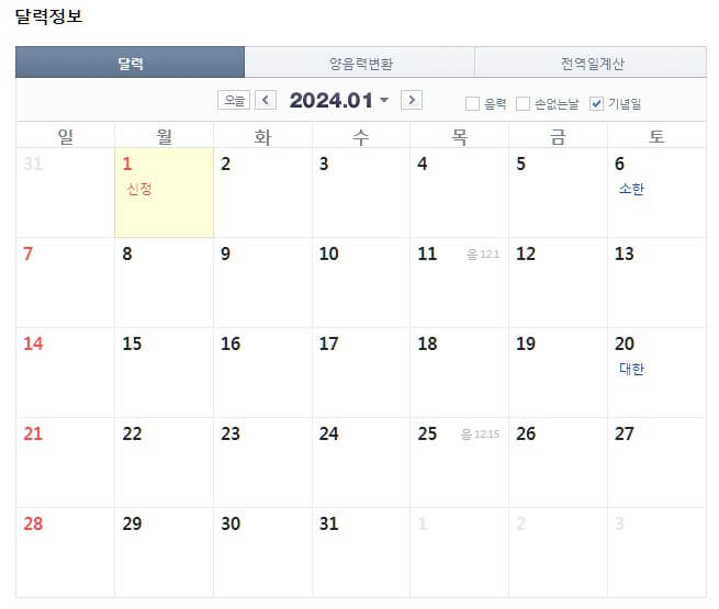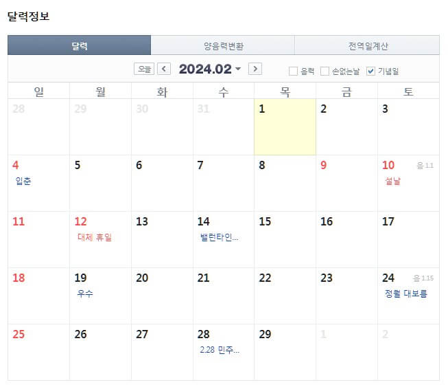 2024년 휴일 정보