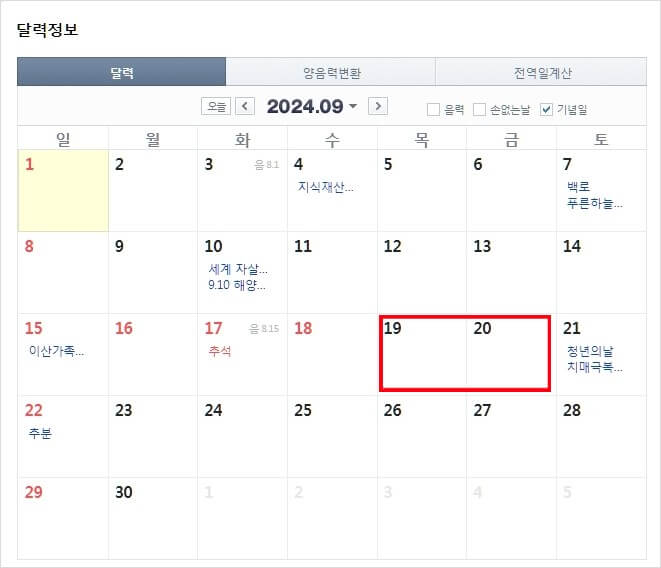 | 9 | 9월 16,17,18일 (월,화,수) | 추석 |