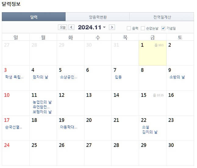 2024년 휴일 정보