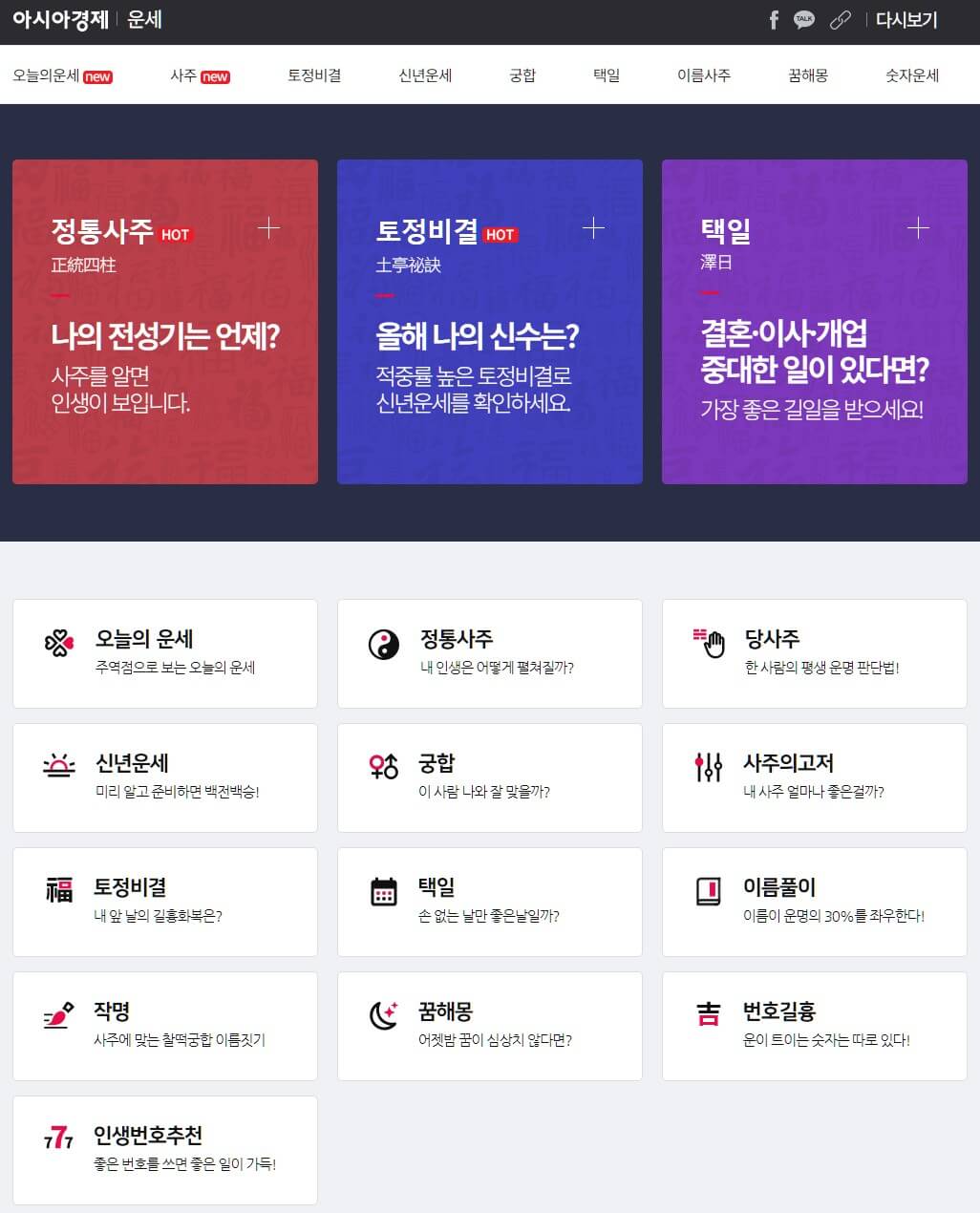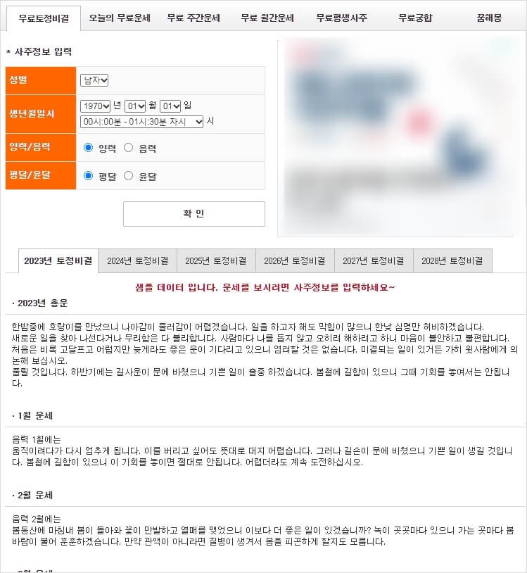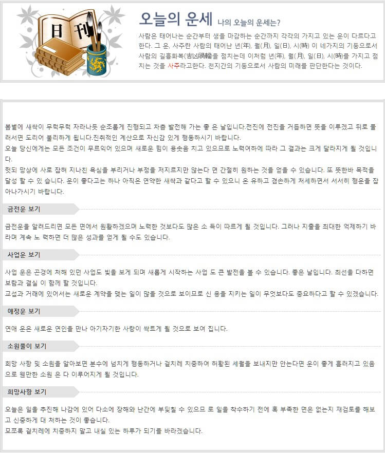 2024년 무료운세 (신한생명,농협,네이버,다음,뽐뿌,아시아경제,네이트,하하사주,모니모,포스텔러,점심)