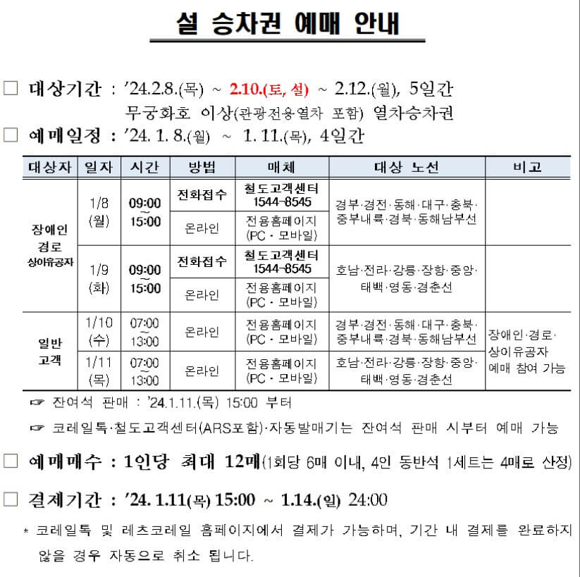 2024년 설날 기차표 예매 핵심꿀팁