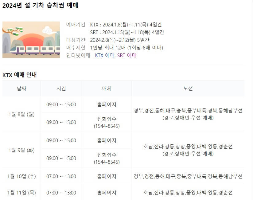 2024년 설명절 기차표 예매 방법 및 일정 꿀팁까지