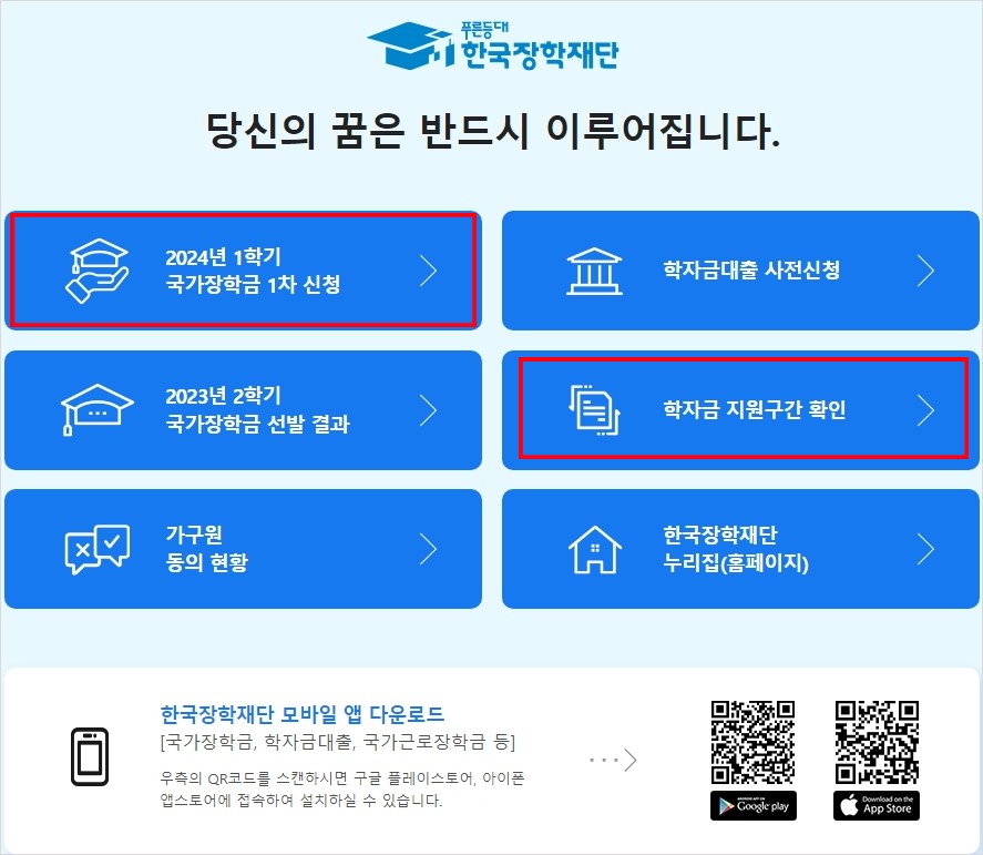 - 대상대학 : 국내 대학 (한국장학재단 홈페이지에서 확인 가능)
