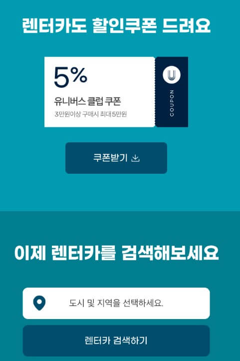 G마켓에서는 여행의 즐거움을 올려줄 렌터카 5% 할인쿠폰도 제공하고 있습니다. 이번 여행 숙소뿐만 아니라 교통비용도 아까서 사랑하는 사람과 즐거운 시간 보내는데 집중하시는 건 어떠할까요?