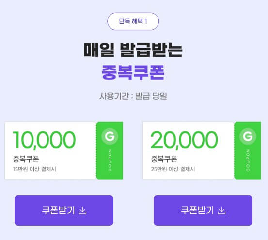 G마켓에서도 매일 오전 10시에 3만 원 할인 쿠폰을 선착순으로 나눠주며, 여기에 15만원 이상시 만원, 25만 원 이상 결제 시 2만 원을 중복 결제 가능한 쿠폰도 지급하고 있습니다. 여기에 렌터카 5% 할인쿠폰도 지급하니 이번 여행기간 차량이 필요하신 분들은 G마켓을 이용하시는 걸 추천드립니다.