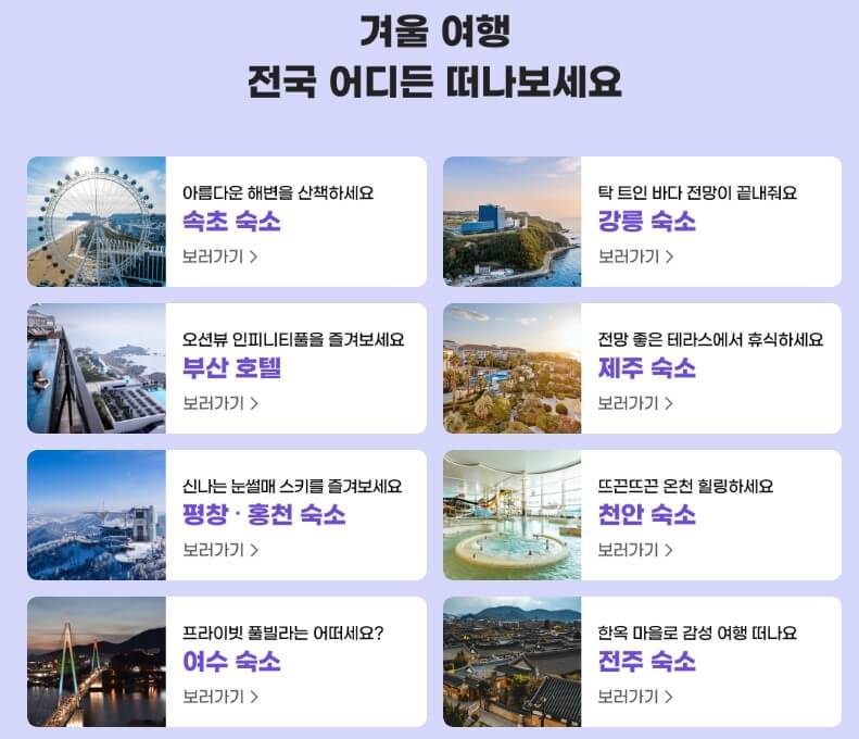 숙박 할인혜택으로는 가장 큰 행사인 숙박페스타에 3만 원에 + 10% 할인 추가로 받으셔서 몰라서 손해 보는 일 없으시길 바랍니다. 즐거운 여행되세요.