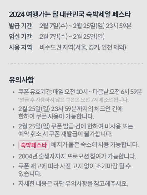 2024 대한민국 숙박세일 페스타 쿠폰 발급 시작