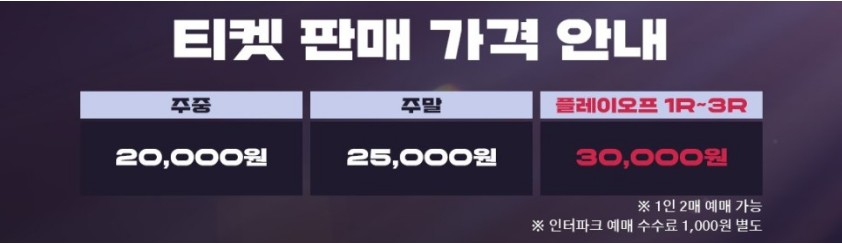 2024 LCK 스프링 시즌부터 티켓가격이 인상되었으며, 또한 현장 티켓 판매는 진행되지 않습니다.