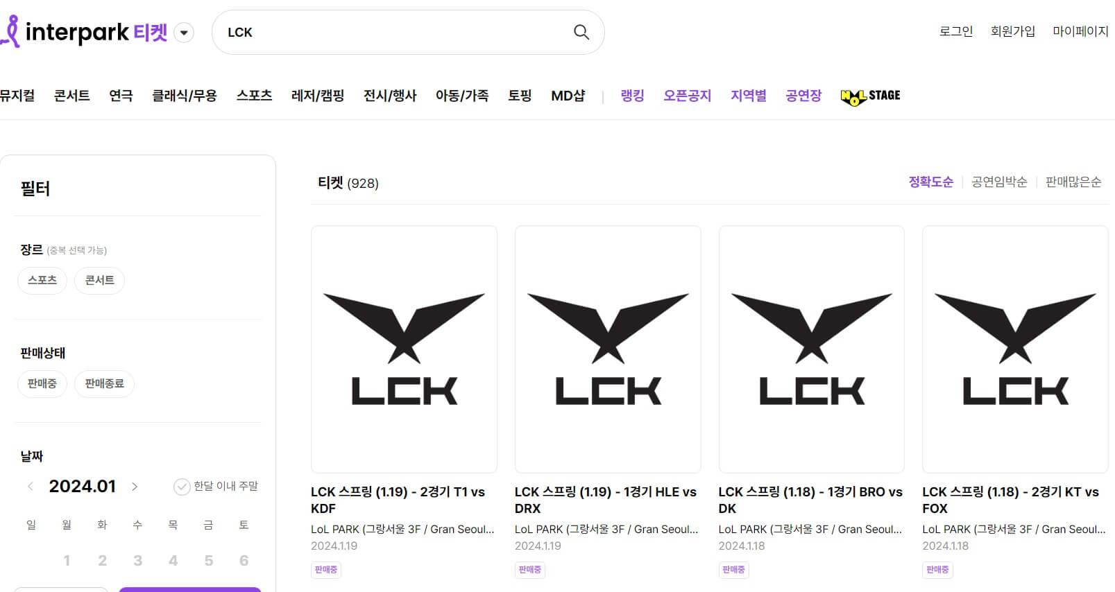 2024 LCK 스프링 티켓팅 빠른 티켓예매방법