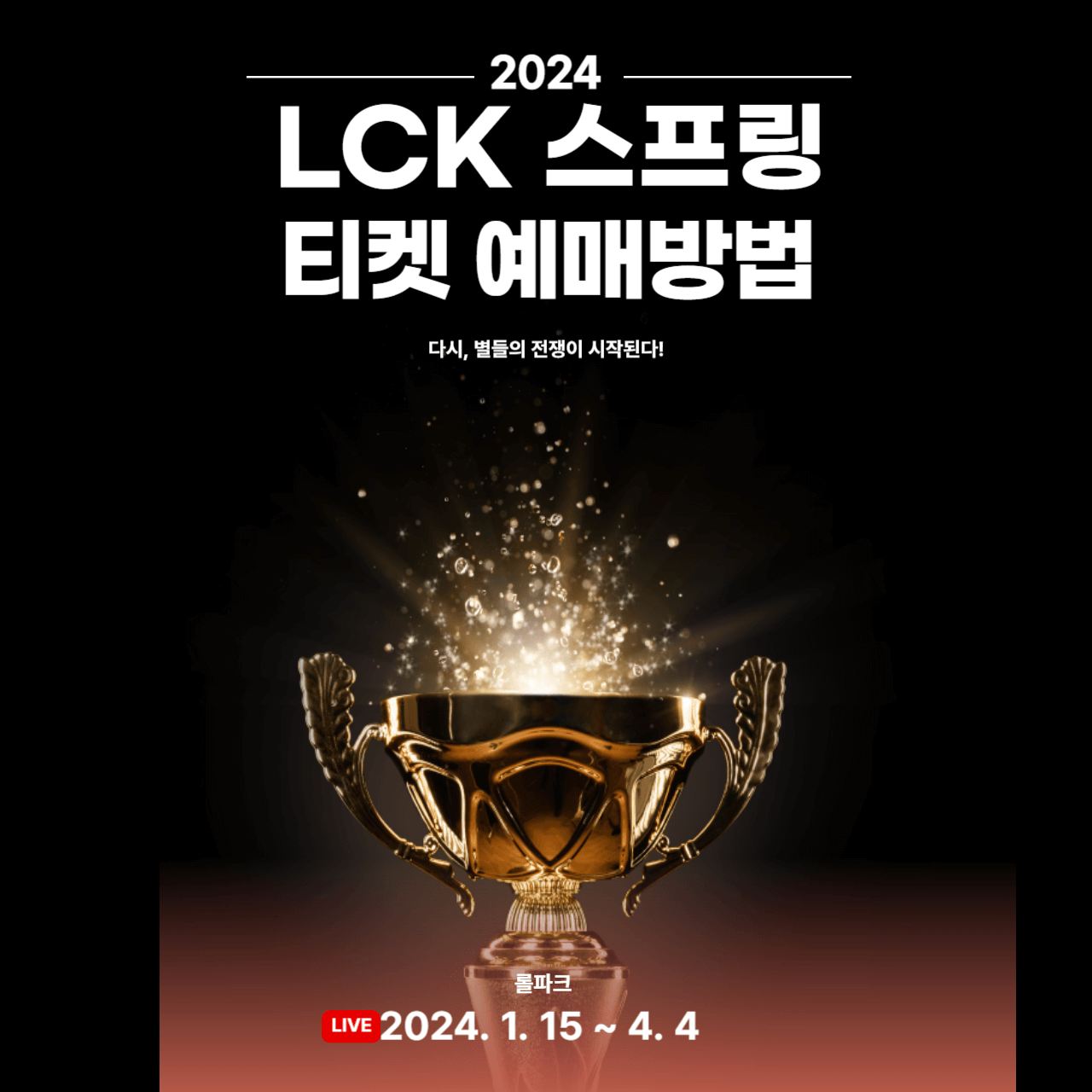 | 2024 LCK 스프링 예매방법 일정 중계 (0) | 2024.01.23 |