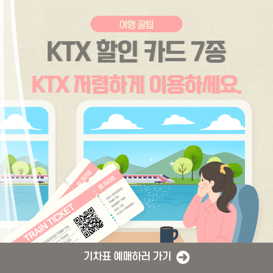 KTX 서울에서 부산까지 2시간 41분으로 비행기를 제외한 가장 빠른 속도를 자랑하는 교통수단이지만, 저렴한 항공료보다 비싼 6만 원에 가까운 가격이 부담으로 다가올 때가 있습니다. 이런 분들을 위해 아래에서 7가지 할인카드를 알아봤으니 지금부터 살펴보겠습니다.